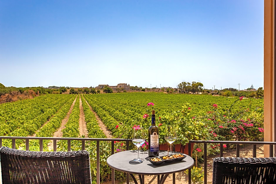 JUNIOR VINEYARD VIEW 3 ADULTS is 366 square feet and includes a king-size bed 150-183 width plus a sofa bed plus balcony, terrace, desk, satellite tv , hairdryer, tea and coffee making facilities , safe, bathrobes, and slippers and is Wheelchair-accessible.